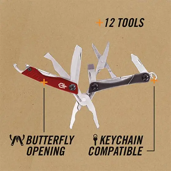 The Dime Multi-tool by Gerber is small and compact but packed with features! Perfect for attaching to your keychain to have a wide variety of tools at your fingertips whenever you need them. It includes needle nose spring-loaded pliers, a wire cutter, plain edge blade, retail package opener, scissors, medium flat screwdriver, phillips head screwdriver, bottle opener, tweezers and a file. With a sturdy stainless steel construction and a 25 year warranty you can’t go wrong with the Gerber Dime Multi-tool.