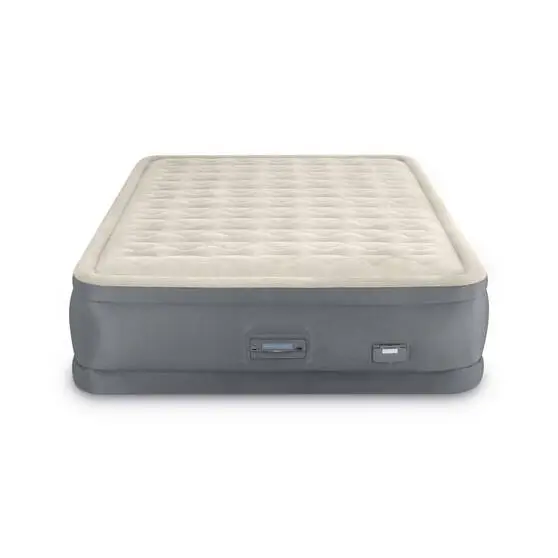 Get a solid night of sleep with the Intex PremAire II 240V Pump Queen Airbed with its luxurious velvety comfort top. Ideal for ensuring guests in your home are happy and comfortable over the holidays, with heavy-duty 2-ply laminated sidewalls and bottom for durability. The revolutionary, patented Fiber-Techβ’ support system provides the perfect combination of superb structural stability and support. With the newly designed pump panel with a firmness control dial and USB port, your comfort and convenience are guaranteed. Intex has added a convenient storage compartment for cords and small personal items and the 2-in-1 included valve for easy inflation and deflation with a manual pump.