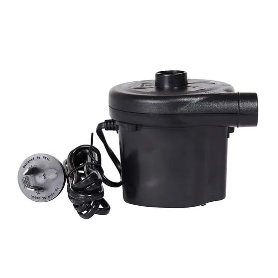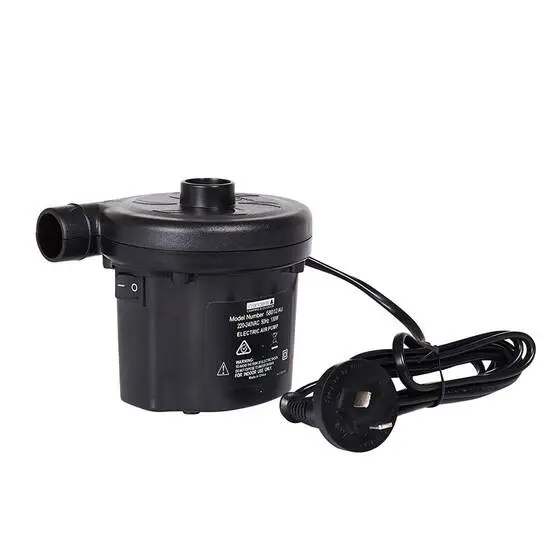 It comes with 3 connectors to suit most valve sizes on air mattresses or inflatable boats. It’s powered by 240V, so it’ll work off the wall sockets in your home. Take the hassle out of inflating your air mattresses – grab the Wanderer 240V Air Pump.