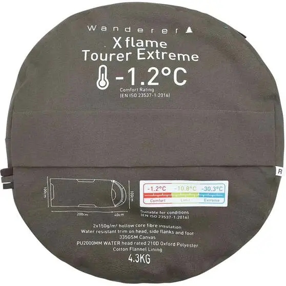 Stuffed with a 2 x 150g/m² multi-core hollow fibre insulation and lined with a soft cotton flannel, it keeps warmth trapped in the bag for an excellent night’s sleep. Your warmth will be protected as the outer water resistant trim sheds water keeping you from getting soggy. The cold won’t be able to seep in from underneath either as the bottom shell has 2000mm water head rating. Crafted from a 335gsm durable canvas, this bag slips back into the stuff sack with tough love, for a sleeping bag you will love for years to come.